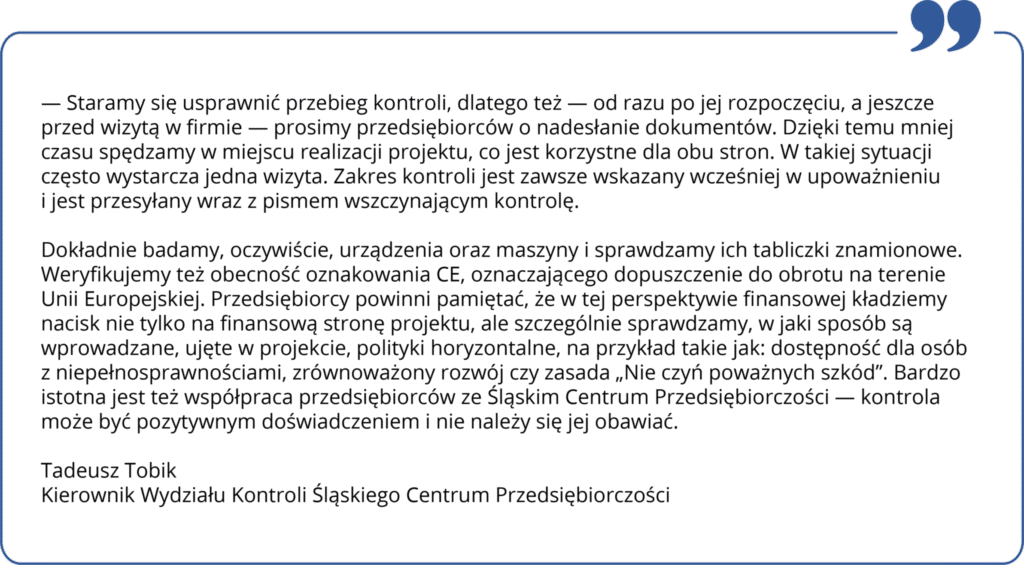 Podczas kontroli zagwarantuj obecność kompetentnych osób, które będą mogły udzielić wyjaśnień dotyczących realizacji projektu: